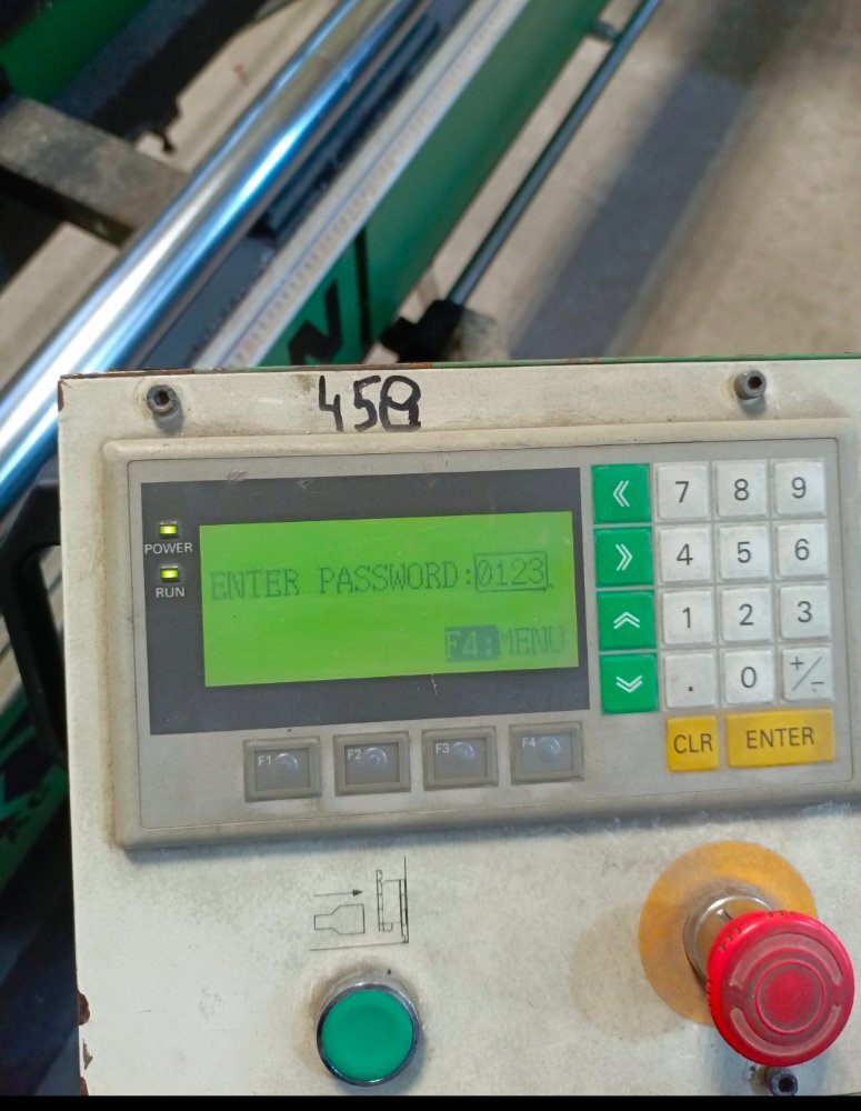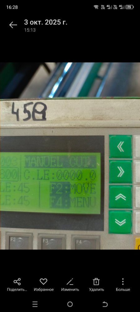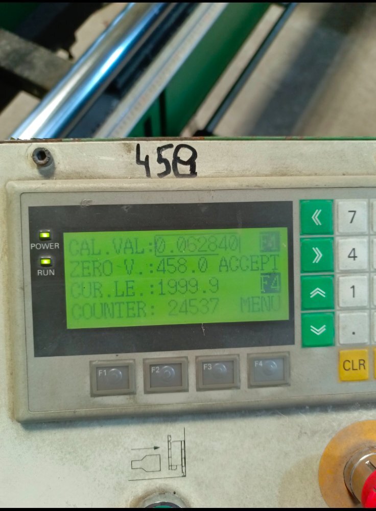 Да станок начал работать только после перепрошивки контролера и замены батарейки. С панели все управляется кроме отправки на размер. Фактический размер пишет 0000. Головы поворачиваются 45-90. Программа точно с этого станка. Сам считывал. По мануалу при включении станка голова должна ехать на калибровку но она не едет . управляется  движение только кнопками влево вправо но при этом счетчик по нолям , не считает. Энкодер стоит еще старый шестеренчатый не магнитная линейка.