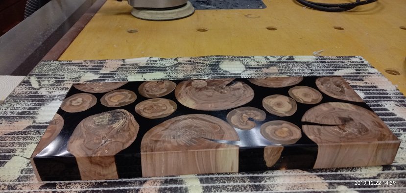Сергей Алексеев Posted November 24, 2019 Posted November 24, 2019 Опыта работы со смолой нет. Чтобы не испортить всю работу, решил потренироваться и сделал по аналогии с большим - малый короб. Разбил его на несколько ячеек. Поэксперементирую с цветом, без колера, залью одним и двумя слоями. Посмотрю как засыхает, будет ли "граница" между слоями заливки и если будут ошибки, то учту их перед непосредственной заливкой стола. В качестве эксперимента в ход пошла яблоня с моего участка. Более полутора лет естественной сушки. Пилил чистил от коры, нарезал на "шайбы" ещё летом, когда не было ленточной пилы. Распиловку осуществлял торцовкой (от того и подпалины, постоянно подклинивало из-за кривизны ствола яблони) и отрезал ещё пару дощечек от лиственницы. Приклеил всё это на термо клей и загерметизировал герметиком. PS Жду прихода смолы. 1