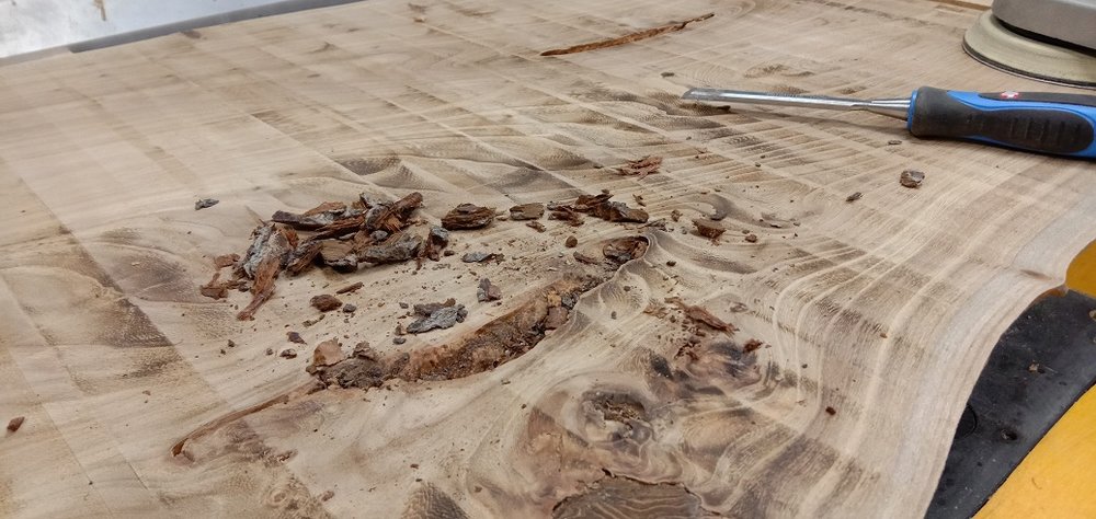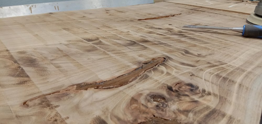 Сергей Алексеев Posted November 3, 2019 Posted November 3, 2019 Опыт впервые, поэтому начал с обратной стороны столешницы, чтобы если будут ошибки - учесть их и не допустить на видимой стороне. Все сучки (сухие гнилости) удаляются и потом эти места заполняются смолой. Смолу отколерую пигментом. Цвет пока не решил (но первые мысли черный или перламутровый кремово-коричневый) 1 2